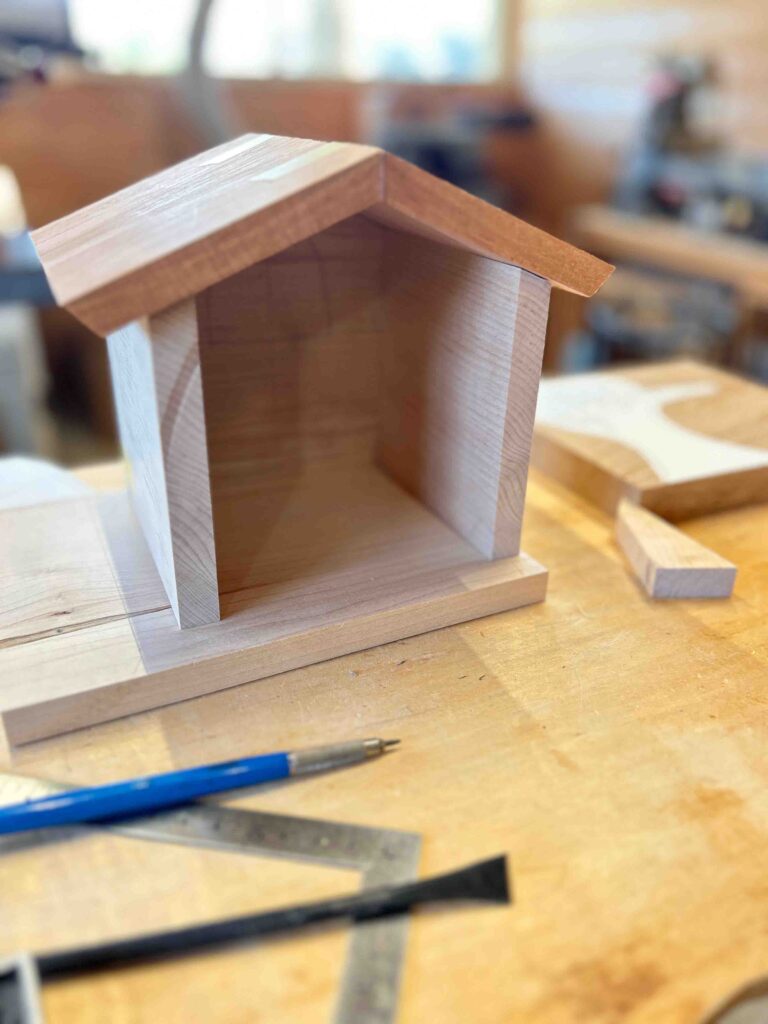 おうちのパーツを切りだし、テープで仮留めして様子を見ます。